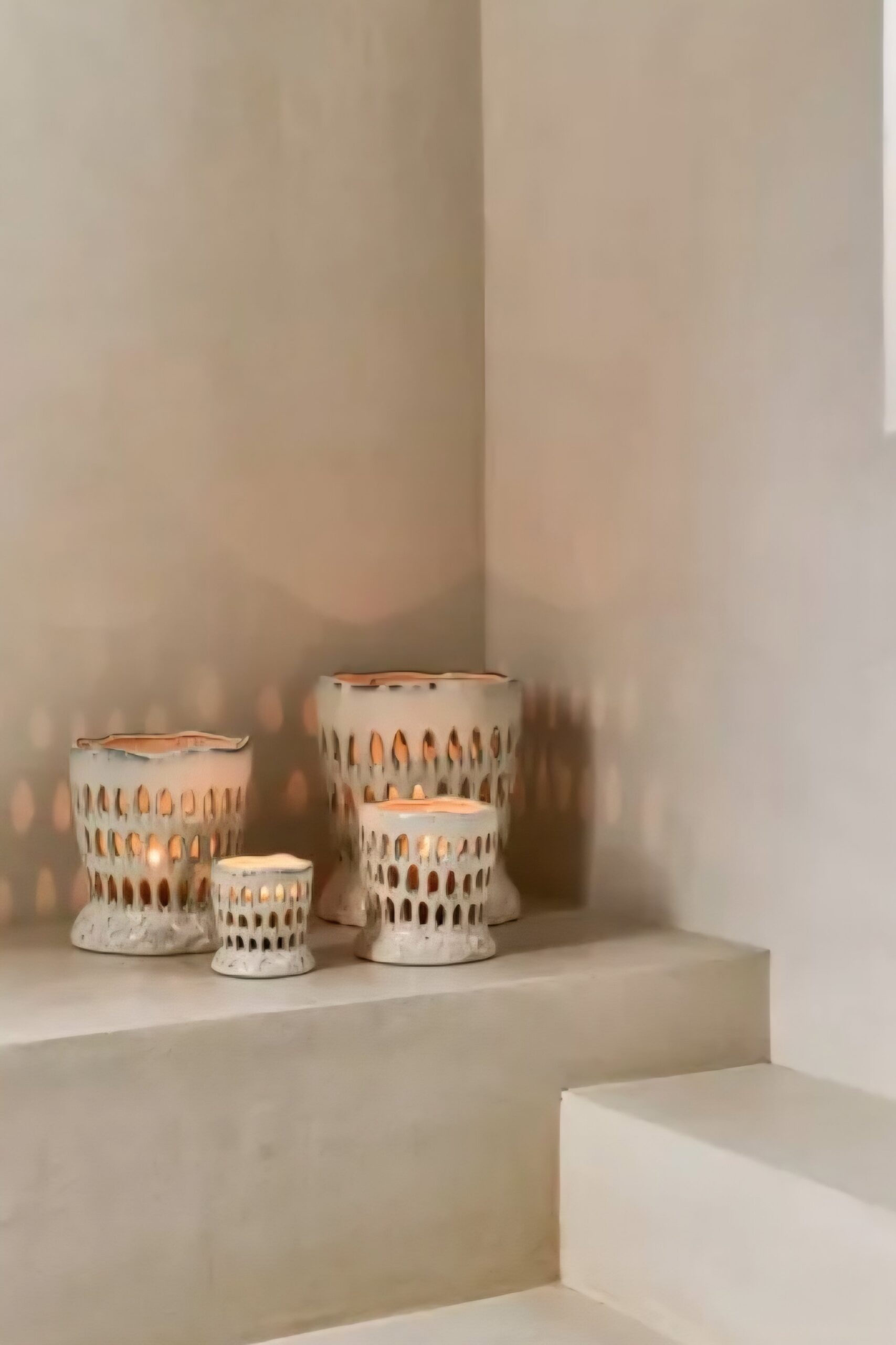 De Coral theelichthouder, geïnspireerd op een zee van koralen, is vervaardigd uit hoogwaardig aardewerk, wat zorgt voor duurzaamheid en een robuuste uitstraling. Deze collectie bestaat uit 4 verschillende maten die voorzien zijn van openingen die een prachtige licht-donker dynamiek creëren wanneer het kaarslicht door de houder heen schijnt, waardoor een warme en uitnodigende sfeer ontstaat.